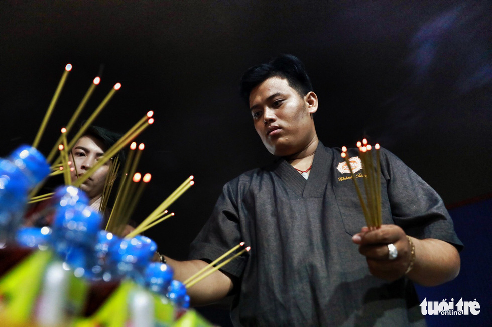Thắp cho các nạn nhân những nén nhang mong tất cả được siêu thoát - Ảnh: HỮU KHOA