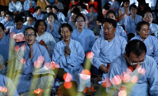 Người người cùng tham gia cầu nguyện - Ảnh: HỮU KHOA