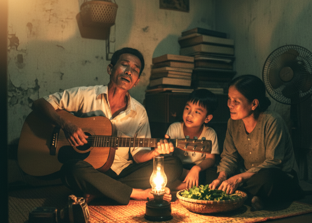 Tiếng đàn guitar buồn thảm trong căn phòng trọ chật hẹp, những nốt nhạc như tiếng than khóc của một tâm hồn đang lạc lối. Chị Hoa đứng ở ngưỡng cửa, tay cầm sợi dây phơi ướt sũng, nhìn bóng lưng gầy guộc của người chồng đang cúi mình bên cây đàn cũ kỹ. Ba năm. Ba năm kể từ ngày anh Tuấn mua cây đàn ấy về, cuộc sống gia đình chị như rơi vào một vòng xoáy không lối thoát.