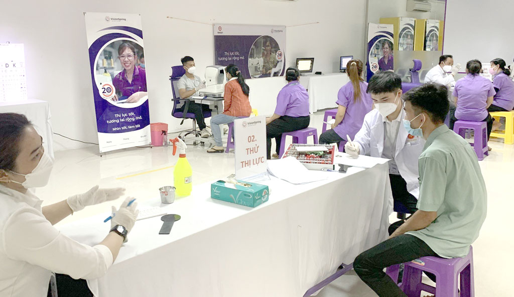 Công ty TNHH May thêu Thuận Phương phối hợp cơ sở y tế khám, tầm soát các bệnh về mắt cho công nhân
