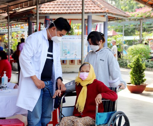 2. Những ngày trời trở lạnh vào ban đêm và khi thức dậy vào buổi sáng, bà Nguyễn Thị Lẹ (thị trấn Bến Lức, huyện Bến Lức) cảm thấy trong người khó chịu, đau nhức các khớp cổ tay, khó vận động khớp ngón tay, đau lưng, mệt mỏi,... Cuối tháng 7/2022, Trung tâm Y tế huyện Bến Lức tổ chức chương trình khám bệnh, cấp phát thuốc miễn phí cho NCT trên địa bàn huyện. Tại đây, bà cũng được các y, bác sĩ của Trung tâm Y tế huyện thăm khám thể lực, khám lâm sàng, siêu âm tổng quát, xét nghiệm đường huyết, mỡ máu,... chẩn đoán bệnh. Đồng thời, bà được tư vấn sức khỏe, kê đơn, cấp phát thuốc miễn phí, hướng dẫn phương pháp điều trị bệnh cho các cụ cao tuổi. Bên cạnh đó, bà cũng như các cụ cao tuổi khác còn được tư vấn tận tình về chế độ ăn uống, cách chăm sóc sức khỏe và phòng tránh một số bệnh thường gặp khi thời tiết thay đổi đột ngột.