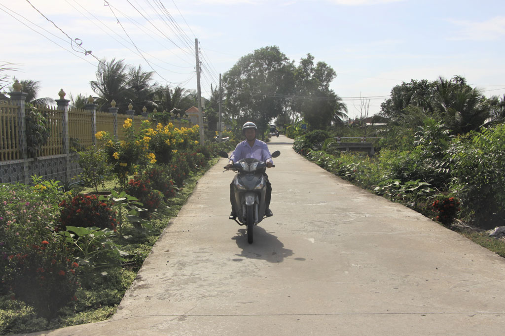 Nhắc về tuyến đường ranh liên xã kênh Chiến Đấu, ông Nguyễn Văn Trắng, ngụ ấp Cầu Hàn, kể: “Trước đây, đường đá đỏ toàn “ổ voi”, “ổ gà”, mùa mưa là coi như khỏi đi. Mấy đứa nhỏ đi học cực khổ lắm! Xã vận động làm đường là dân ủng hộ liền vì có lợi, thuận tiện cho mình mà”. Đường ranh liên xã kênh Chiến Đấu giờ là đường bêtông 4m, hai bên đường trồng hoa rực rỡ, lắp đèn đường sáng rực mỗi đêm. Ông Trắng cho biết, cây do chính quyền địa phương trồng và người dân hỗ trợ chăm sóc. “Sẵn người ta tưới thanh long hay có nhà cặp đường thì tưới luôn cây dọc đường. Có bao nhiêu công sức đâu, chính quyền lo tới đó thì dân cũng phụ thêm vô chứ!” - ông Trắng cười, nhìn hàng hoa trổ vàng trước ngõ nhà mình.