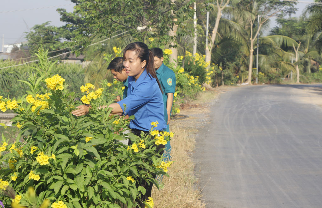 Nhờ Bí thư đồng thời là Chủ tịch xã nên các Nghị quyết tại Dương Xuân Hội được thực hiện nhanh chóng hơn. Tuyến đường kiểu mẫu xanh, sạch, đẹp được hoàn tất sau 1 năm với kinh phí hơn 150 triệu đồng. (Trong ảnh: Các đoàn thể thường xuyên phát quang, chăm sóc hoa dọc 2 bên đường kênh Chiến Lược)