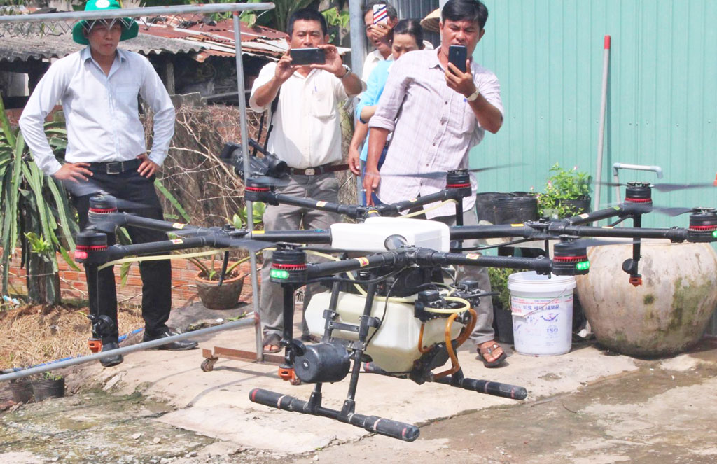 Sáng 23/9, Trung tâm Dịch vụ Nông nghiệp tỉnh Long An phối hợp Phòng Nông nghiệp và Phát triển nông thôn huyện Châu Thành tổ chức hội thảo tổng kết các mô hình sản xuất thanh long ứng dụng công nghệ cao tại hợp tác xã (HTX) điểm Dương Xuân và giới thiệu máy bay phun thuốc không người lái dễ quản lý dịch hại trên thanh long.