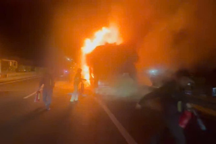 Cháy xe khách trên cao tốc TP.Hồ Chí Minh – Trung Lương, 10 hành khách kịp thoát nạn