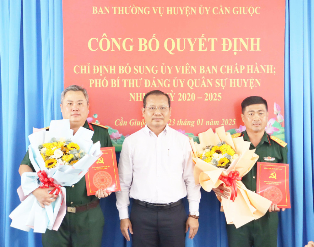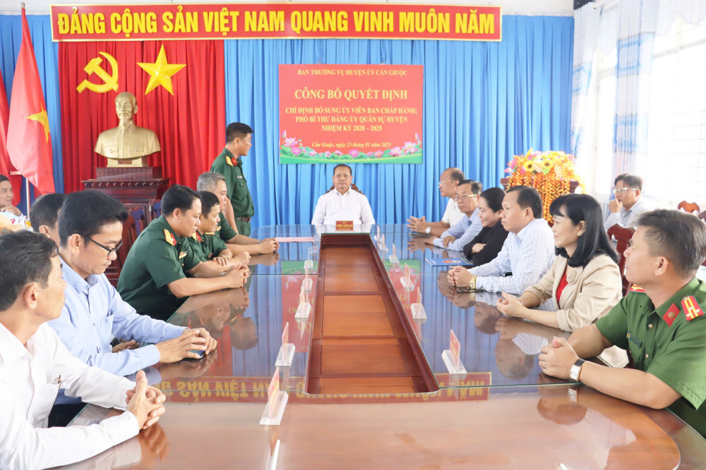 Ban Thường vụ Huyện ủy Cần Giuộc, tỉnh Long An vừa tổ chức công bố quyết định chỉ định bổ sung Ủy viên Ban Chấp hành, Phó Bí thư Đảng ủy Quân sự huyện, nhiệm kỳ 2020 - 2025.