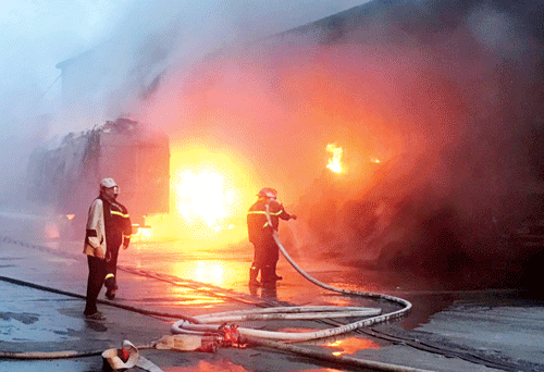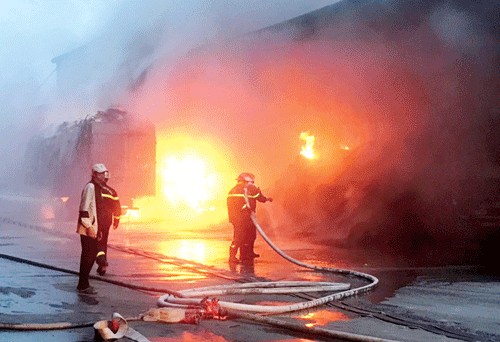 Cán bộ, chiến sĩ chữa cháy trong đêm