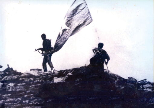 Cờ Giải phóng tung bay trên đỉnh núi Bà Đen ngày 07/01/1975 (Ảnh tư liệu PV chiến trường Báo Tây Ninh)