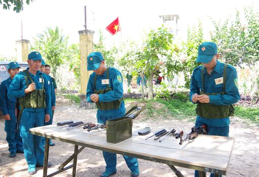 Các chiến sĩ dân quân thực hiện thao tác lắp ráp vũ khí làm nhiệm vụ