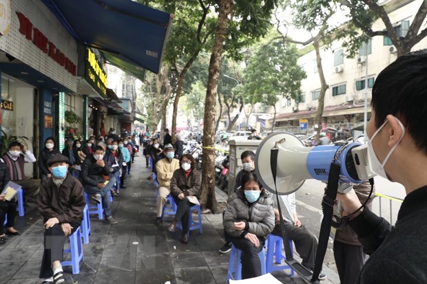 Người dân phường Hàng Bông đến tiêm chủng vaccine phòng COVID-19 chiều 17/2. (Ảnh: Minh Quyết/TTXVN)