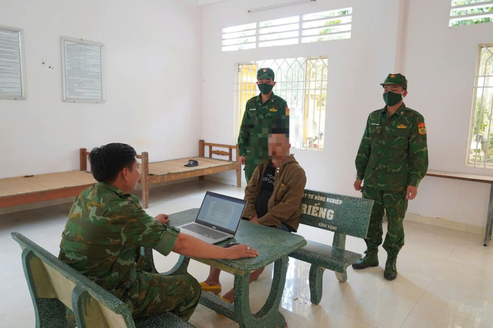 Bộ đội biên phòng làm việc với một đối tượng vi phạm khi qua lại biên giới