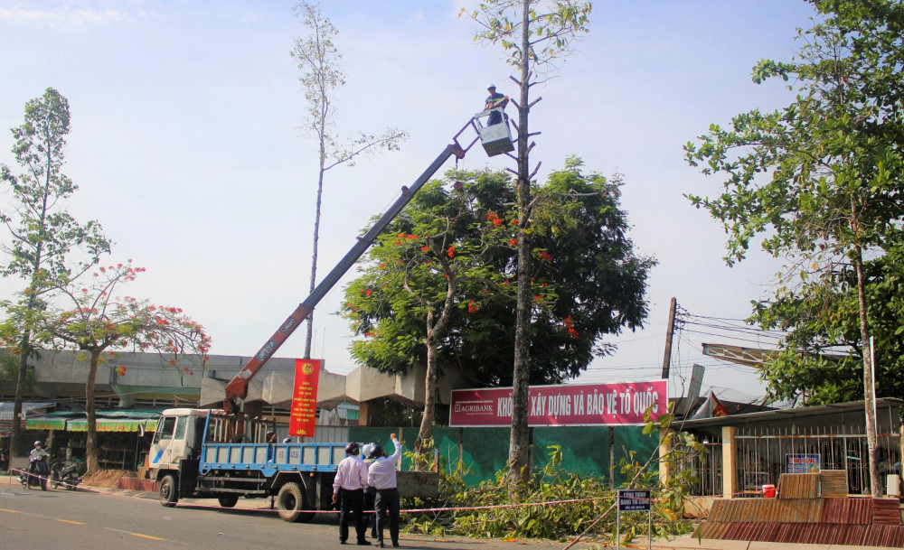 Ngành chức năng phối hợp địa phương cắt tỉa cây xanh đề phòng ngã đổ trước mùa mưa, bão