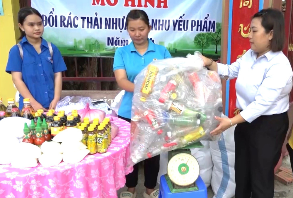 Phụ nữ thực hiện mô hình Đổi rác thải nhựa lấy nhu yếu phẩm