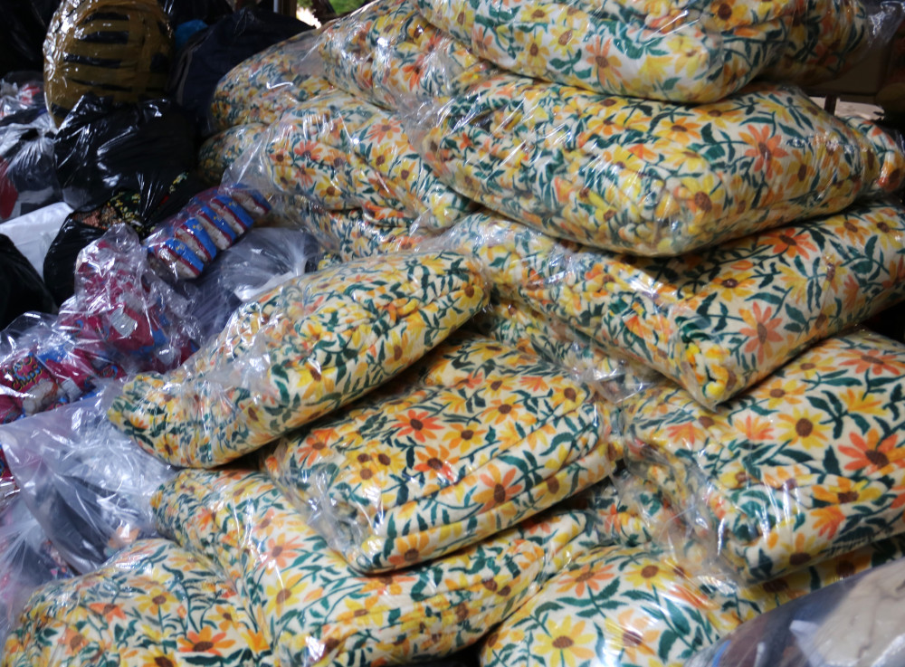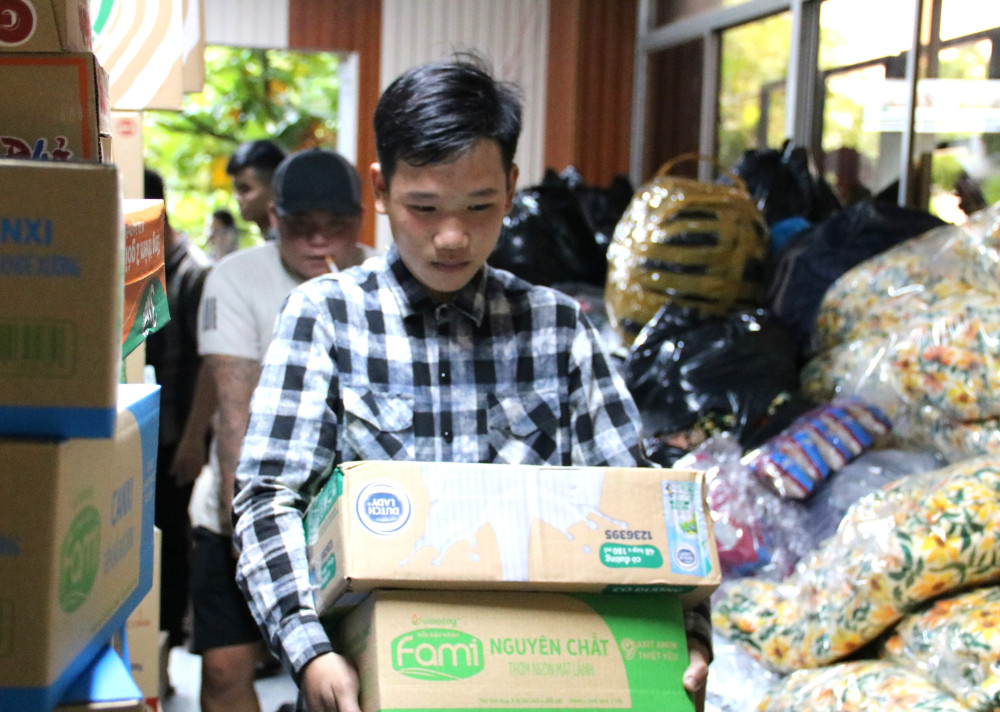 Tại Nhà khách Tổng Liên đoàn (phường 3, TP.Tân An, tỉnh Long An), có rất nhiều người dân địa phương mang những nhu yếu phẩm đến để quyên góp cho những chuyến xe thiện nguyện, tiếp sức cho đồng bào miền Bắc.