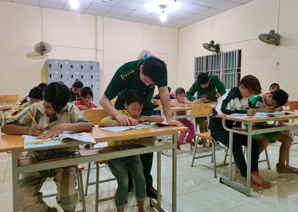 Theo thời gian, lớp học tình thương ấy vẫn sáng đèn mỗi tối. Các em nhỏ vẫn đều đặn đến lớp, ê a đánh vần từng chữ. Những người lính bộ đội biên phòng vẫn cần mẫn sửa từng lỗi chính tả, dạy từng phép toán, đặt từng viên gạch tri thức đầu đời cho các em. Tình cảm giữa “thầy giáo quân hàm xanh” và các em không chỉ là tình thầy - trò mà còn là tình người, tình quân - dân nơi biên giới. Từ những việc làm nghĩa tình ấy, hình ảnh người chiến sĩ bộ đội biên phòng ngày càng được Nhân dân tin yêu, kính trọng. Qua đó, thế trận lòng dân nơi biên cương ngày càng được củng cố, an ninh chính trị, trật tự, an toàn xã hội được bảo đảm.