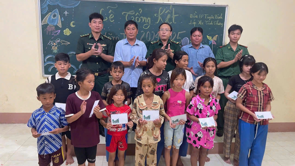 Song song với dạy học, cán bộ, chiến sĩ ĐBP Tuyên Bình còn vận động các tổ chức từ thiện, nhà hảo tâm trong và ngoài tỉnh hỗ trợ đồ dùng học tập, quần áo, cặp sách, giày dép, sữa, bánh kẹo,... cho các em vào dịp lễ, tết, năm học mới. Mỗi phần quà tuy không lớn nhưng tiếp thêm động lực để các em duy trì đến lớp. Không chỉ vậy, đơn vị còn phối hợp chính quyền địa phương hướng dẫn, hỗ trợ phụ huynh làm hồ sơ, đăng ký hộ tịch theo đúng quy định của pháp luật, từng bước đưa các em vào diện được hưởng chính sách giáo dục và an sinh xã hội, tạo nền tảng cho việc học tập lâu dài.