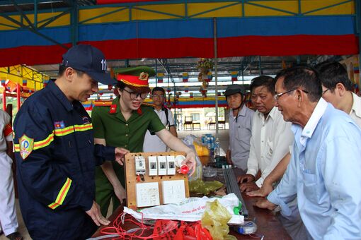 Cán bộ hướng dẫn công tác bảo đảm phòng cháy, chữa cháy trong những ngày diễn ra Đại lễ