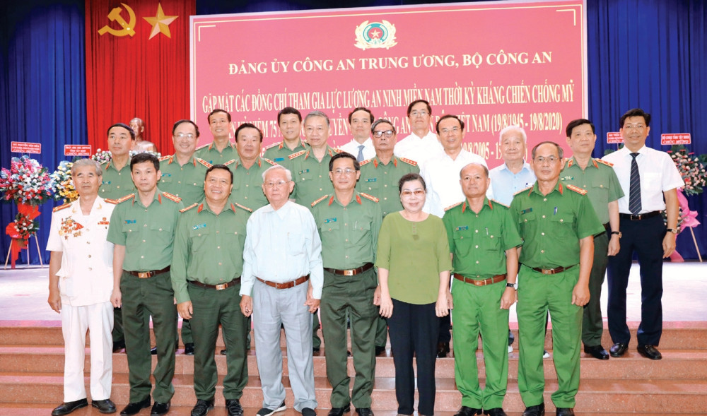 Các đồng chí lãnh đạo Trung ương chụp ảnh lưu niệm cùng các đồng chí tham gia lực lượng An ninh miền Nam ngày 19/8/2020