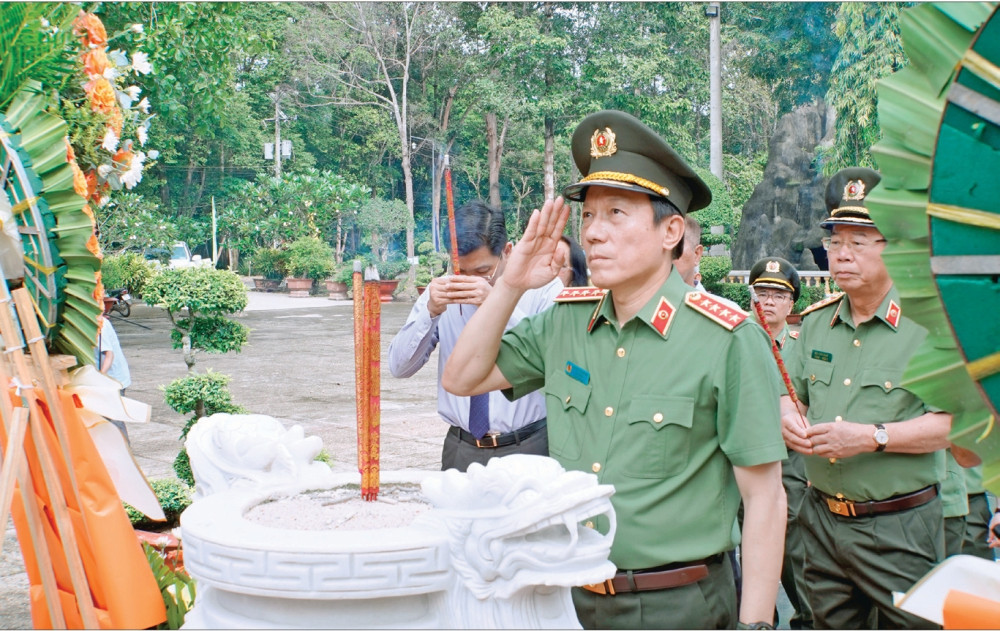 Đại tướng Lương Tam Quang - Ủy viên Bộ Chính trị, Bí thư Đảng ủy Công an Trung ương, Bộ trưởng Bộ Công an, dâng hương Tượng đài đồng chí cố Bộ trưởng Phạm Hùng năm 2025