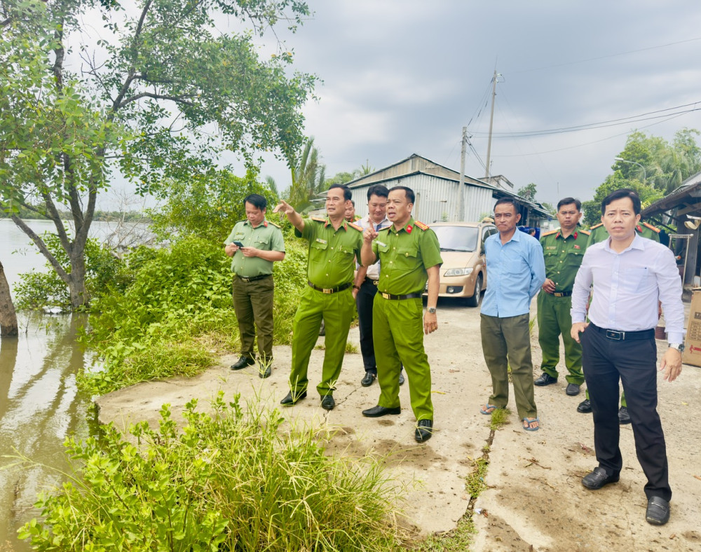 Công an tỉnh Tây Ninh: Khảo sát tình hình sạt lở tại xã Cần Giuộc