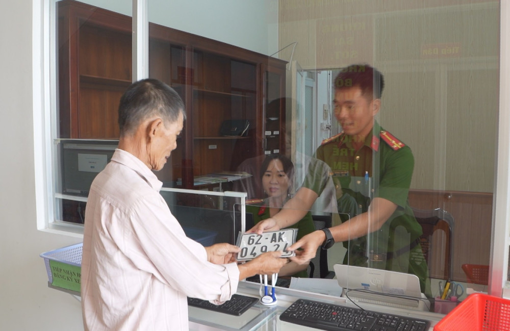 Ông Trần Văn Tha (ngụ phường Long An) đến Công an phường để làm thủ tục cấp biển kiểm soát xe. Chỉ trong thời gian ngắn, toàn bộ quy trình được giải quyết nhanh chóng, thuận tiện.