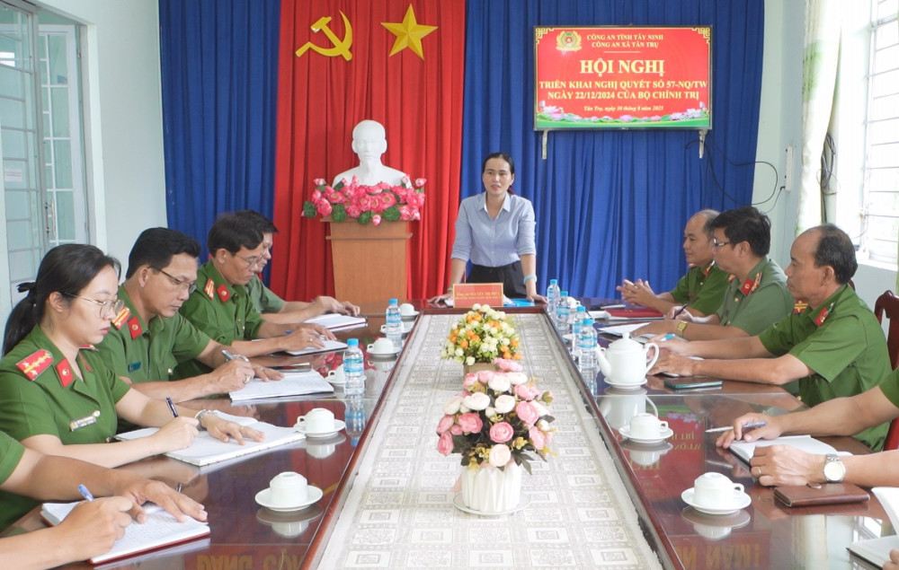 Thực hiện ý kiến chỉ đạo của Đảng ủy, Ban Giám đốc Công an tỉnh về triển khai Nghị quyết số 57-NQ/TW, ngày 22/12/2024 của Bộ Chính trị về đột phá phát triển khoa học, công nghệ, đổi mới sáng tạo và chuyển đổi số quốc gia, Công an phường Long An, tỉnh Tây Ninh tham mưu UBND phường, Ban Chỉ đạo phường và Tổ công tác Đề án 06 đôn đốc, chỉ đạo quyết liệt các phòng, ban, ngành và cả hệ thống chính trị cùng tham gia triển khai thực hiện các nhiệm vụ của Đề án 06, bảo đảm mọi tầng lớp Nhân dân đều được tiếp cận, tuyên truyền, hướng dẫn tích hợp giấy tờ trên VNeID, từng bước thúc đẩy phát triển kinh tế số, xã hội số, công dân số trong toàn phường.