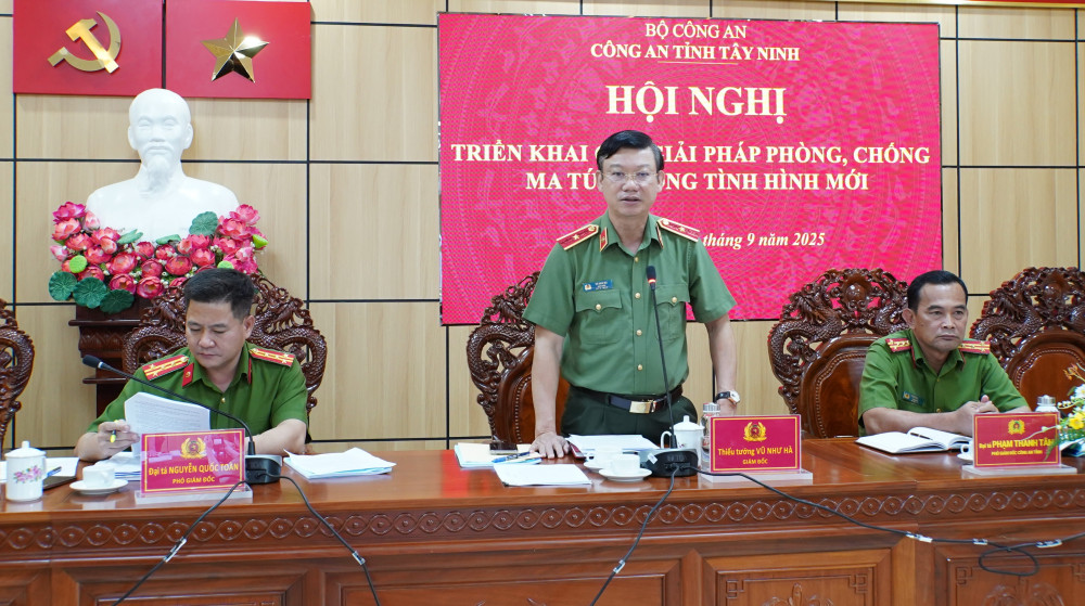 Phát biểu chỉ đạo hội nghị, Thiếu tướng Vũ Như Hà - Ủy viên Ban Thường vụ Tỉnh ủy, Bí thư Đảng ủy, Giám đốc Công an tỉnh đánh giá, tỉnh Tây Ninh sau sáp nhập có đường biên giới rất dài, gần 375km, giáp với 3 tỉnh của Vương quốc Campuchia, do đó việc thẩm lậu ma túy qua biên giới thời gian tới tiếp tục diễn biến phức tạp.