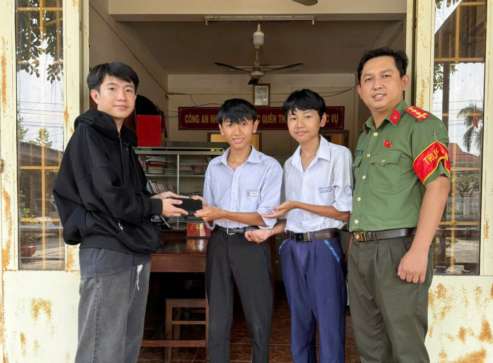 Vào lúc 11 giờ, ngày 12/11, trên đường đi học về, em Đặng Tiến Đạt (học sinh lớp 10A1, Trung tâm Giáo dục nghề nghiệp - Giáo dục thường xuyên Tân Châu) và em Đặng Tiến Bảo (học sinh lớp 10A1, Trường THPT Tân Châu, xã Tân Châu) nhặt được một chiếc điện thoại di động iPhone XS Max. Ngay sau đó, hai em đã nhanh chóng mang chiếc điện thoại đến trình báo Công an xã Tân Châu.