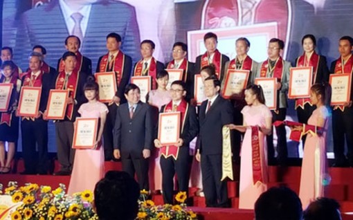Chủ tịch nước Trương Tấn Sang dự và trao danh hiệu Hàng Việt Nam chất lượng cao cho các doanh nghiệp tiêu biểu.