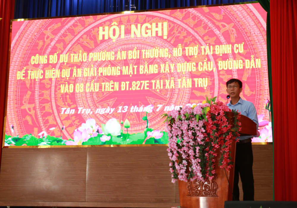 Công bố dự thảo phương án bồi thường, hỗ trợ tái định cư thực hiện dự án Đường tỉnh 827E tại xã Tân Trụ