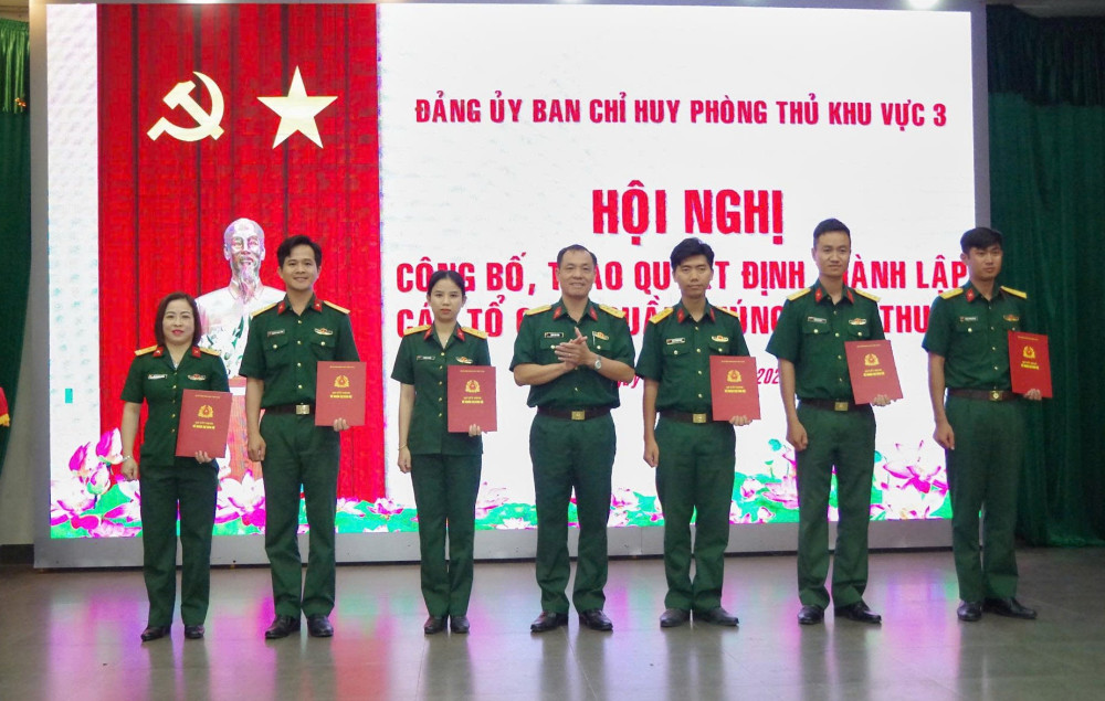 Chiều 17/7, Đảng ủy Ban Chỉ huy phòng thủ khu vực 3 công bố, trao quyết định thành lập các tổ chức quần chúng. Thượng tá Trần Văn Toàn - Bí thư Đảng ủy, Chính ủy Ban Chỉ huy phòng thủ khu vực 3 dự và chỉ đạo hội nghị.
