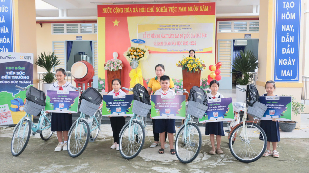 Nhân dịp khai giảng năm học mới, Công ty TNHH Đức Thành phối hợp Ban Giám hiệu các nhà trường tổ chức trao tặng 10 phần học bổng "Tiếp sức đến trường".
