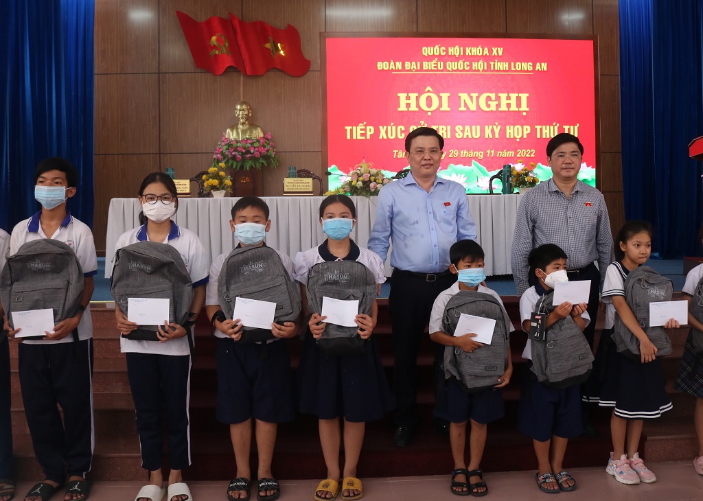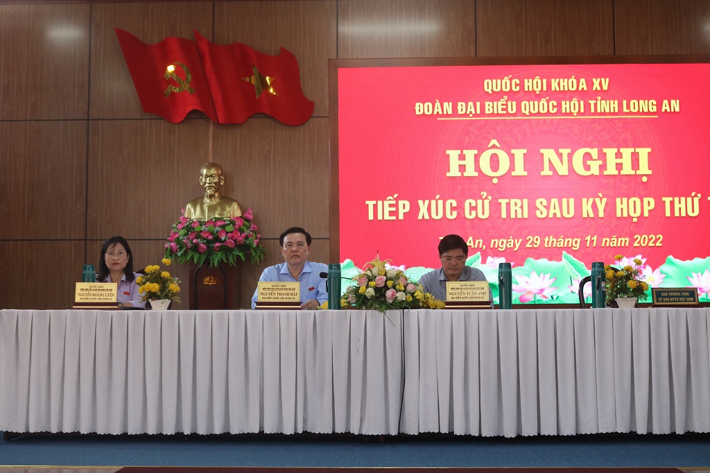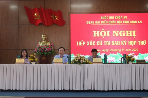 Chiều 29/11, Đoàn đại biểu Quốc hội đơn vị tỉnh Long An gồm: Ông Nguyễn Thanh Hải - Phó Bí thư Thường trực Tỉnh ủy, Trưởng đoàn đại biểu Quốc hội tỉnh; ông Nguyễn Tuấn Anh - Phó Chủ nhiệm Ủy ban Khoa học, Công nghệ và Môi trường của Quốc hội; bà Nguyễn Hoàng Uyên - Phó Giám đốc Trung tâm Kiểm soát bệnh tật tỉnh có cuộc tiếp xúc cử tri TP.Tân An sau Kỳ họp thứ 4, Quốc hội khóa XV.