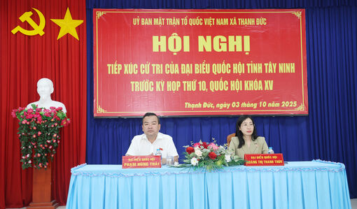 Chiều 03/10, Đoàn đại biểu Quốc hội tỉnh Tây Ninh tổ chức Hội nghị tiếp xúc cử tri trước Kỳ họp thứ 7, Quốc hội khóa XV tại xã Thạnh Đức.