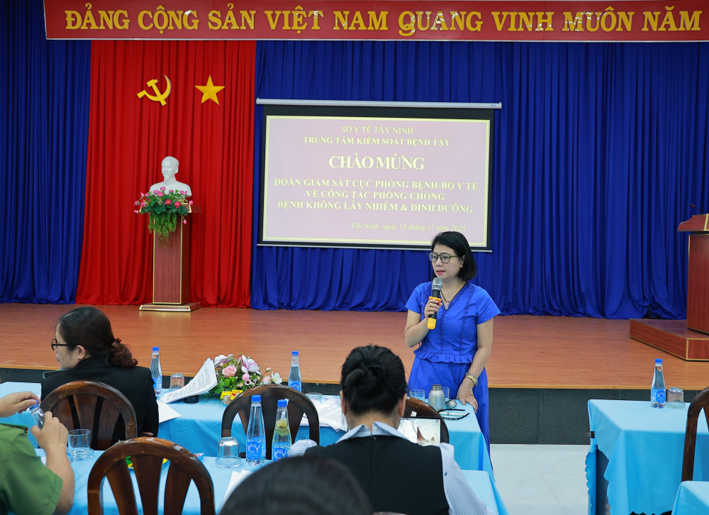 Phó Giám đốc Trung tâm Kiểm soát bệnh tật (CDC) Tây Ninh báo cáo công tác phòng, chống và quản lý, điều trị bệnh không lây nhiễm, tác hại của rượu, bia trên địa bàn tỉnh Tây Ninh