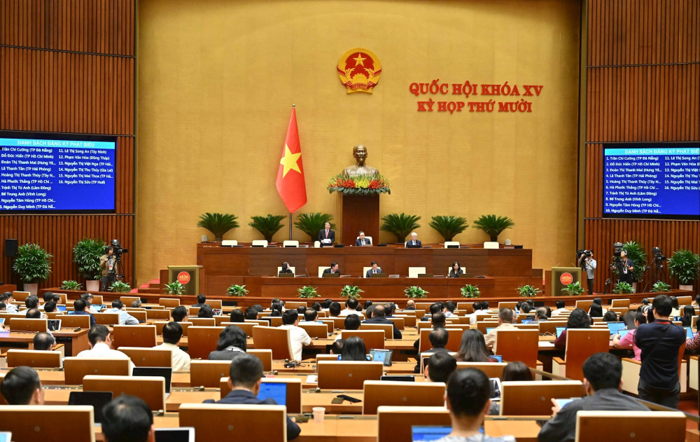 Quốc hội thảo luận tại Hội trường về dự án Luật Thương mại điện tử (sửa đổi)