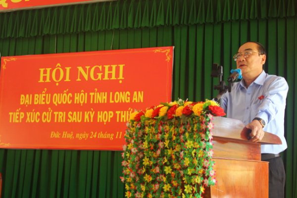 Ngày 24/11, Đoàn đại biểu Quốc hội tỉnh Long An, gồm ông Trương Văn Nọ - Chủ tịch Ủy Ban MTTQ Việt Nam tỉnh Long An, Trưởng đoàn Đại biểu Quốc hội tỉnh Long An và ông Đặng Hoàng Tuấn – Phó Giám đốc Sở Giao thông Vận tải đã có buổi tiếp xúc với trên 100 cử tri huyện Đức Huệ tại hội trường UBND xã Mỹ Thạnh Bắc.