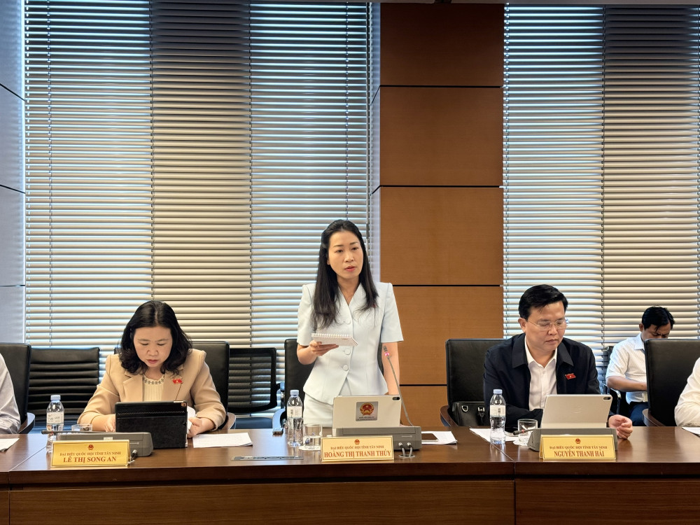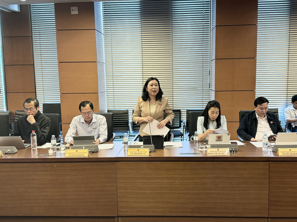 Đại biểu Lê Thị Song An - Phó Trưởng đoàn chuyên trách Đoàn ĐBQH tỉnh phát biểu thảo luận
