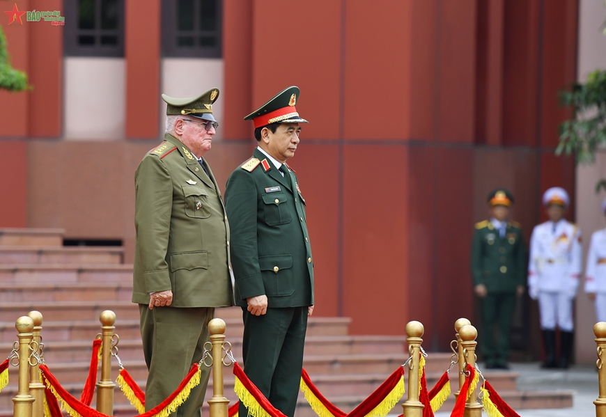 Đại tướng Phan Văn Giang và Thượng tướng Álvaro López Miera duyệt Đội danh dự Quân đội nhân dân Việt Nam. Ảnh: Tuấn Huy