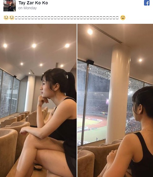 Điều không ngờ là sau khi Tay Zar Ko Ko đăng tải bức hình (đang ngồi trong phòng VIP) ở SVĐ Mandalarthiri, cô đã bất ngờ “hot” trên mạng xã hội vì vẻ đẹp quyến rũ của mình, khi nó được lan tỏa rộng rãi.