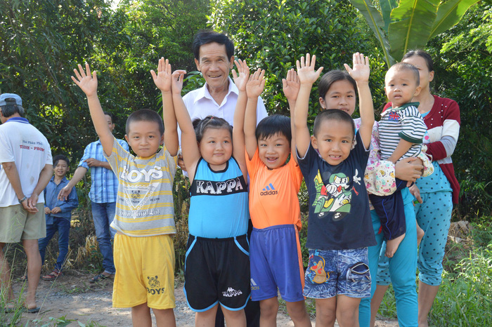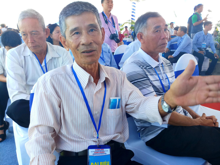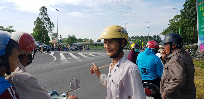 Ông Lê Văn Hòn (72 tuổi) vượt khoảng 15km từ sớm để có mặt tại vị trí điểm giao với đường dẫn lên cầu. Ông cho biết xem truyền hình thấy thông báo 8h30 cầu được khánh thành cứ nghĩ là đúng 8h30 là được đi lên cầu và cho biết sẵn sàng chờ hàng giờ để là người đầu tiên bước chân lên cầu - Ảnh: Chí Quốc