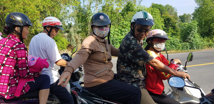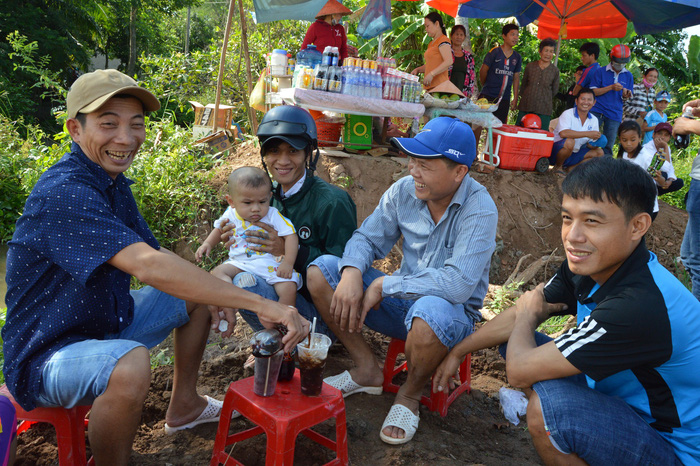 Nhiều người ở rất xa đã không quản ngại gian khó đi từ sớm. Trời nắng khá gắt cũng không ngăn được sự háo hức của bà con.