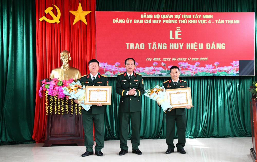 Ngày 05/11, Đảng ủy, Ban Chỉ huy Phòng thủ khu vực 4 - Tân Thạnh, Bộ Chỉ huy Quân sự (CHQS) tỉnh Tây Ninh tổ chức Lễ trao tặng Huy hiệu 30 năm tuổi Đảng cho Đại tá Nguyễn Thành Lâm và Thượng tá quân nhân chuyên nghiệp Nguyễn Văn Khánh.