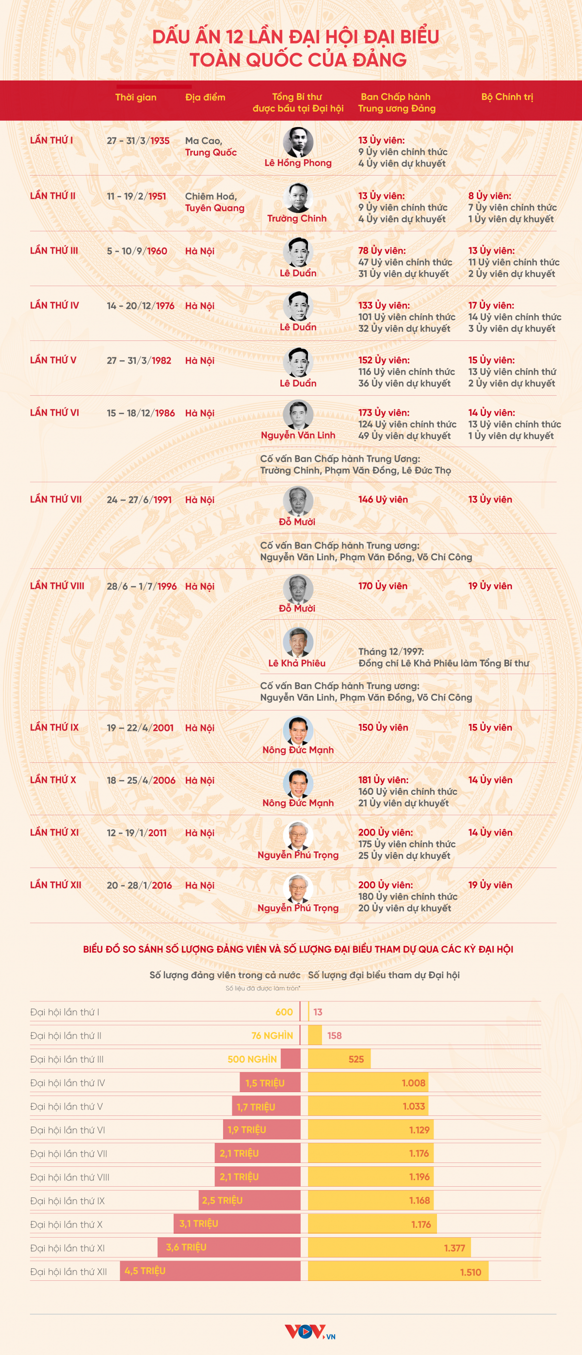 Dấu ấn 12 lần Đại hội Đại biểu toàn quốc của Đảng