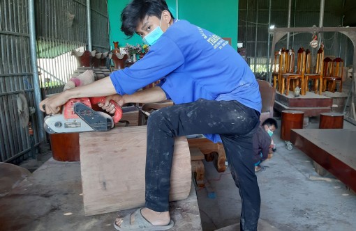 Doanh nghiệp nhỏ và vừa rất cần sự hỗ trợ về pháp lý (Trong ảnh: Công nhân một cơ sở chế biến gỗ ở xã Thái Bình Trung, huyện Vĩnh Hưng)