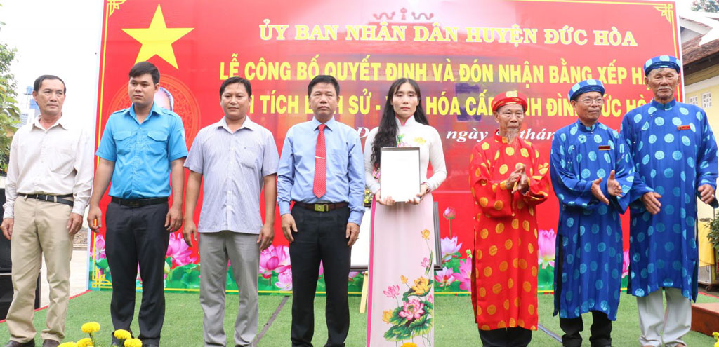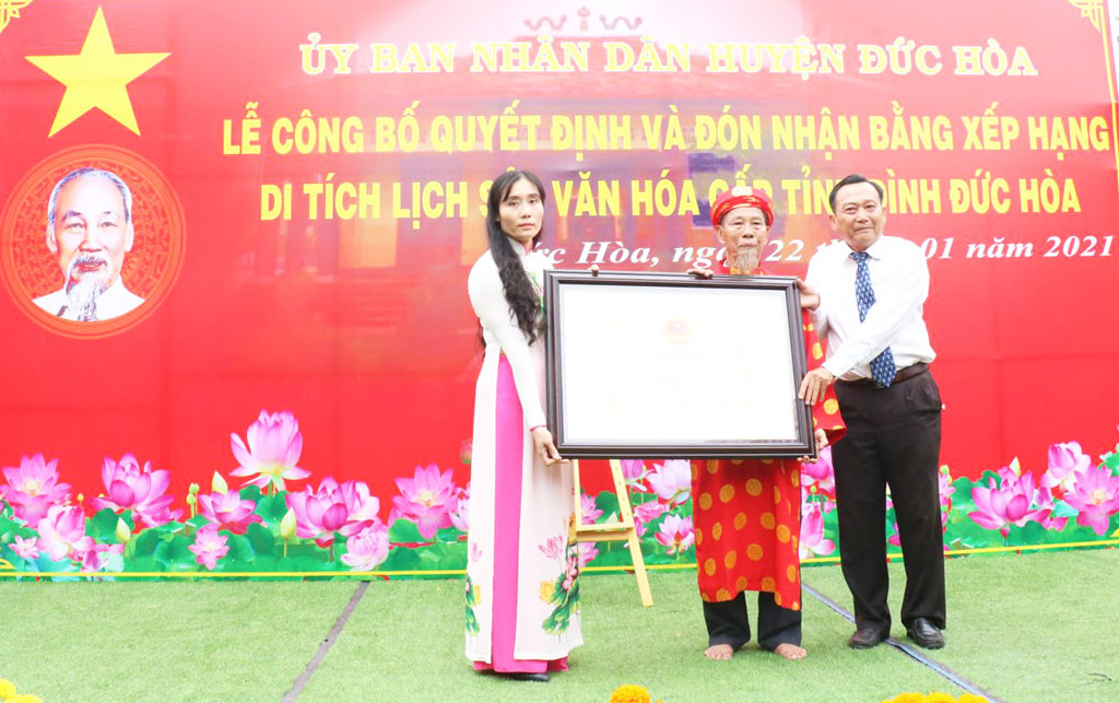 Ngày 22/01, UBND huyện Đức Hòa, tỉnh Long An tổ chức Lễ công bố quyết định và đón nhận bằng xếp hạng di tích lịch sử - văn hóa cấp tỉnh Đình Đức Hòa.
