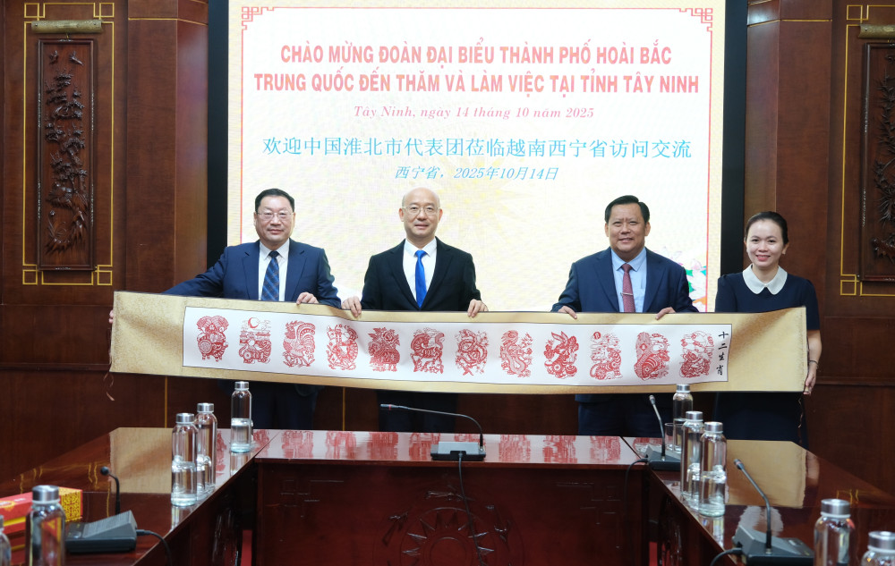 Chiều 14/10, Đoàn Chính quyền nhân dân thành phố Hoài Bắc, tỉnh An Huy (Trung Quốc) do Bí thư Thành ủy thành phố Hoài Bắc Vương Hoa Đông làm trưởng đoàn đến thăm và làm việc tại tỉnh Tây Ninh. Phó Chủ tịch UBND tỉnh Tây Ninh Huỳnh Văn Sơn cùng lãnh đạo các sở, ngành tỉnh tiếp và làm việc với đoàn.