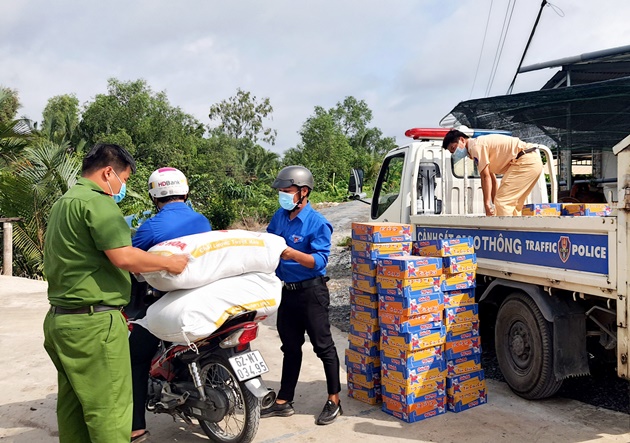Đoàn cơ sở Công an huyện Bến Lức giúp đỡ người đang cách ly