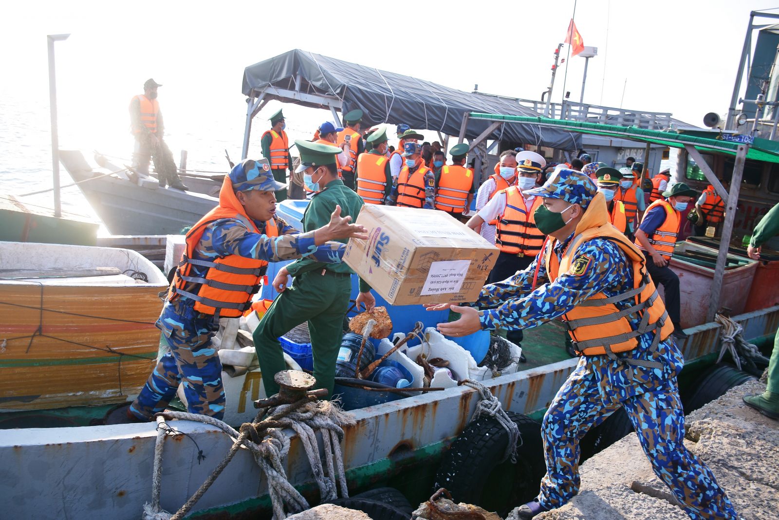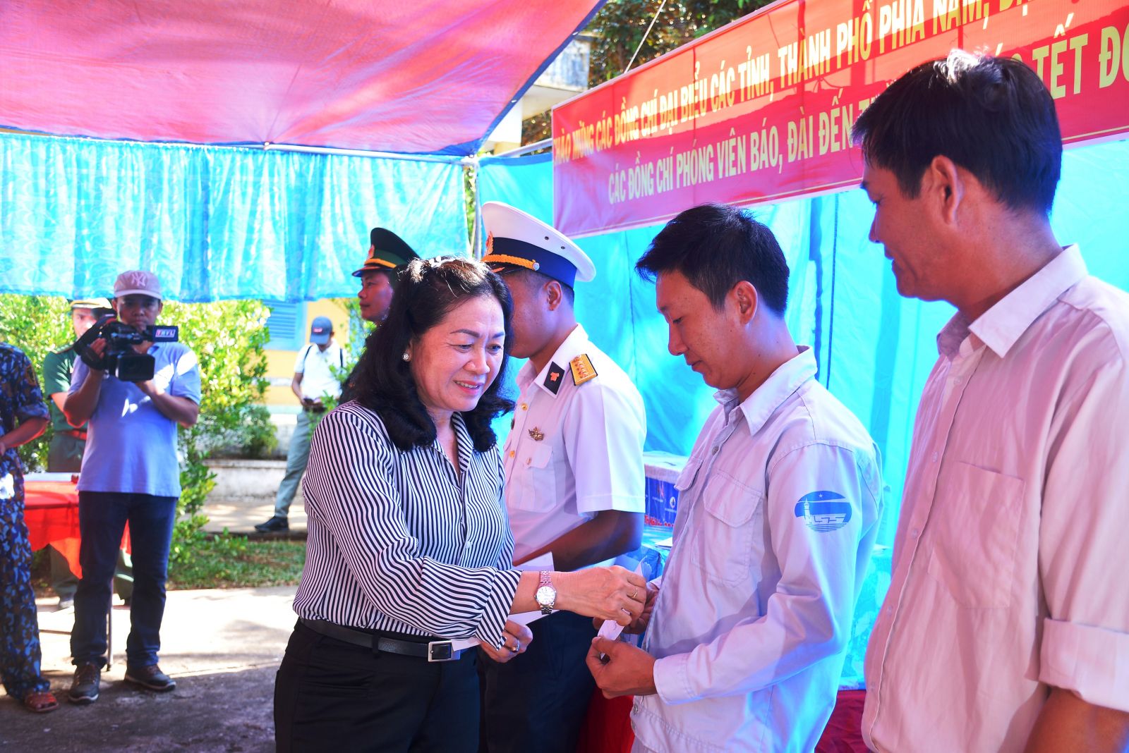 Tiếp tục hải trình, ngày 11/01, Đoàn công tác Bộ Tư lệnh Vùng 5 Hải quân và các tỉnh, thành phía Nam, đến thăm, chúc tết và tặng quà cho cán bộ, chiến sĩ các lực lượng và nhân dân trên đảo Hòn Chuối.