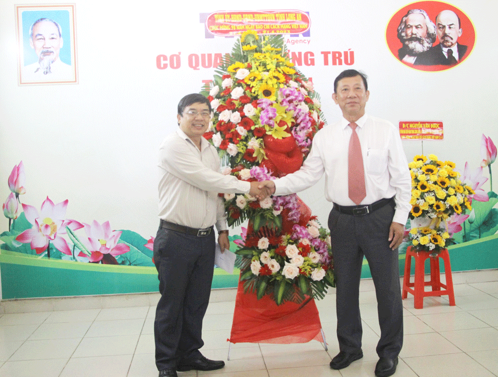 Sáng 19/6, Đoàn công tác của Tỉnh ủy, HĐND, UBND, UBMTTQ Việt Nam tỉnh Long An do Giám đốc Sở Thông tin và Truyền thông - Nguyễn Bá Luân làm Trưởng đoàn đến thăm, chúc mừng Cơ quan thường trú Thông tấn xã Việt Nam tại Long An và Tạp chí Văn nghệ Long An (Hội Liên hiệp Văn học Nghệ thuật tỉnh) nhân kỷ niệm 98 năm Ngày Báo chí Cách mạng Việt Nam (21/6/1925-21/6/2023).